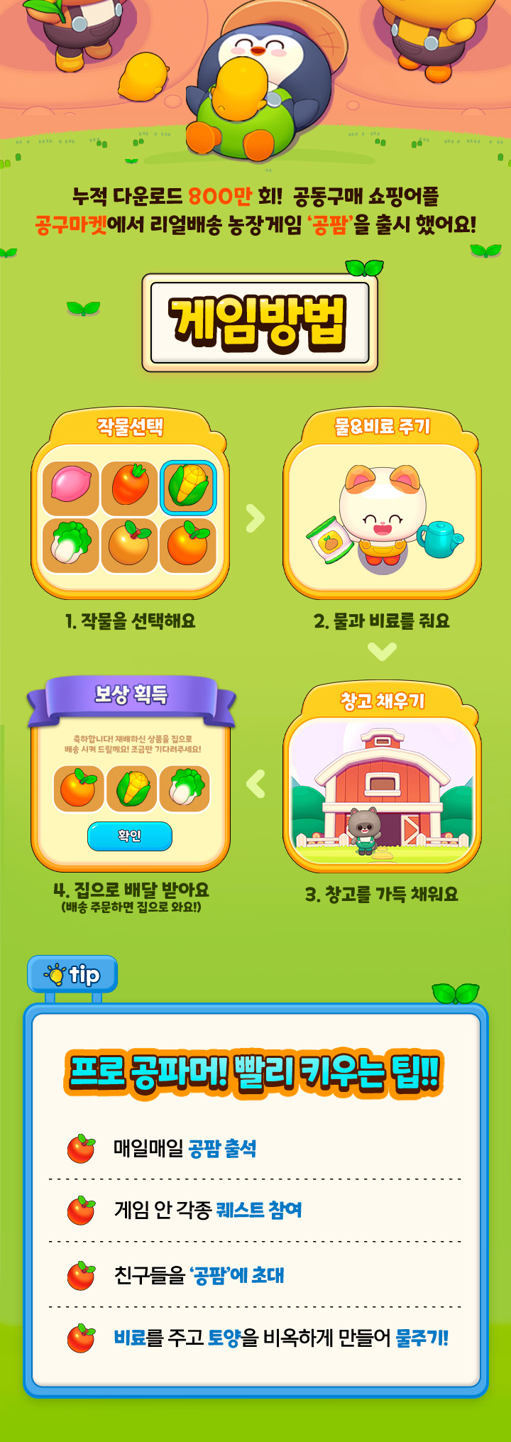 공팜 농사짓는 게임으로 모으기를 할 수 있습니다. 포인트는 다양한 방법으로 모을 수 있습니다.