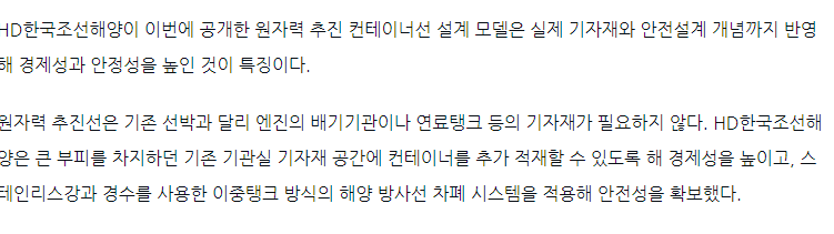 원자력 추진 컨테이너선 설계모델 2030년까지 완공 계획을 발표했다.