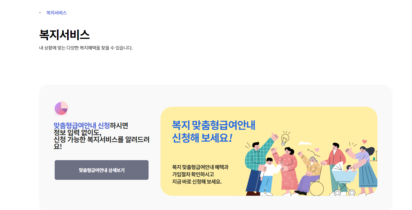 복지서비스는 내 상황에 맞는 다양한 복지혜택을 찾을 수 있습니다.