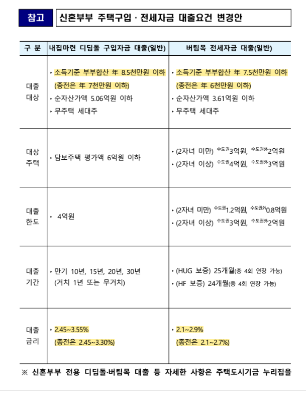 주택구입은 주택가격 9억 원 이하입니다. 대출 한도는 5억 원입니다. 자산 가치 조건은 5억 600만 원으로 변동 없습니다.